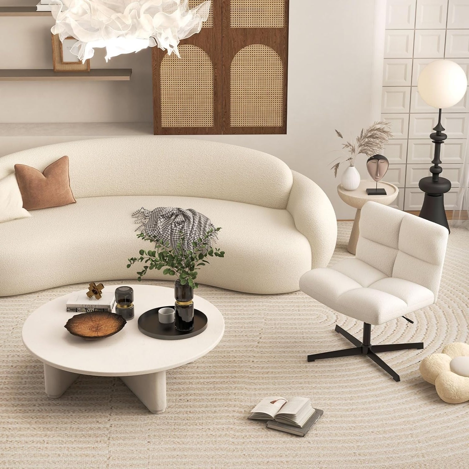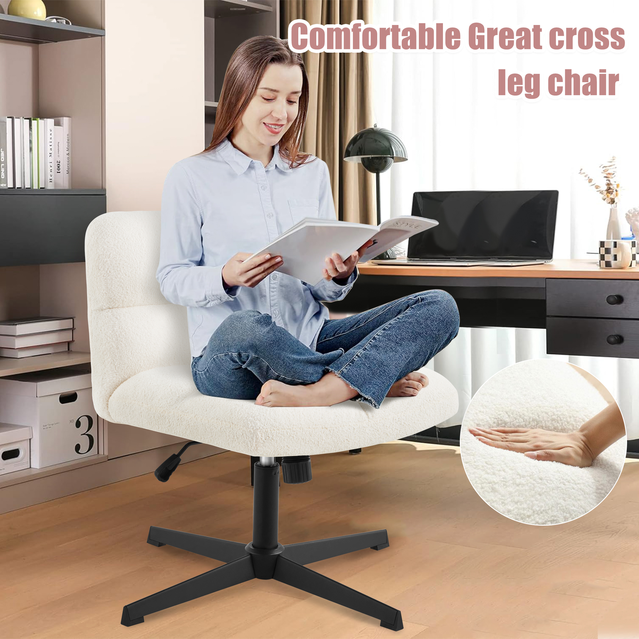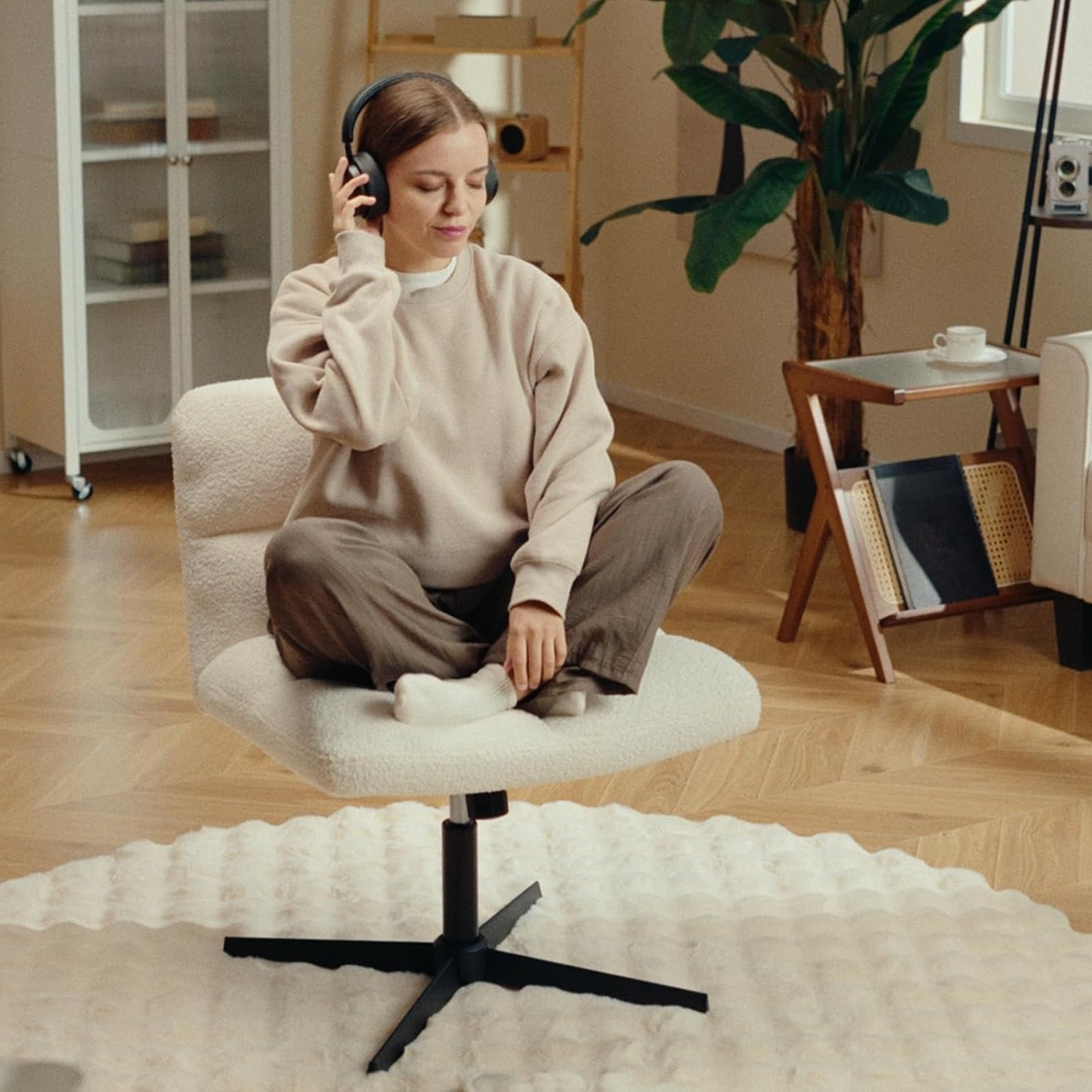 No wheels design, the bottom of the vanity chair is firmer and more stable without tipping and slipping. No need to worry about getting farther and father away from the desk when sitting cross-legged in the chair to work. 27.9-inch wide metal base of office chairs, no worry about tipping over when the back is leaning back, 350-pound weight capacity.