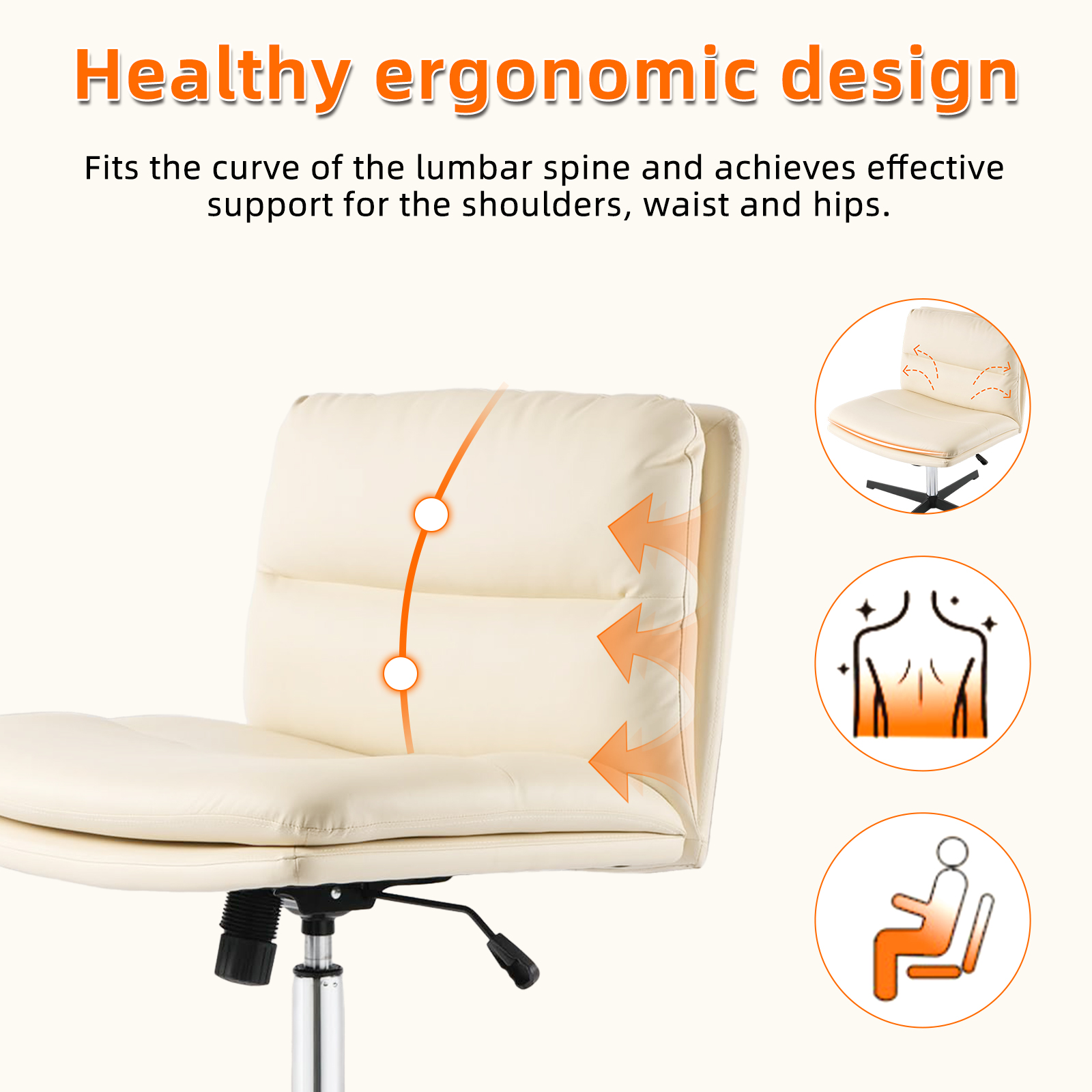 - 【Curved smile type structure】This cross-legged office chair fits the curve of the lumbar spine and provides strong support for the shoulders, lower back and hips.The C-curve seating surface, which fits the curve of the buttocks and legs, disperses the pressure on the legs and reduces the feeling of compression, so you can sit in the chair for a long time and not feel any fatigue.