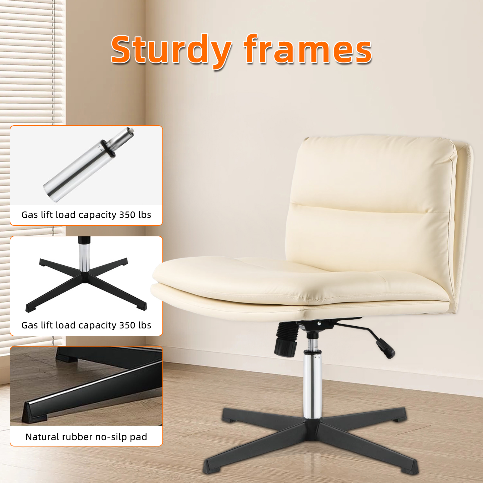 - 【稳定安全的金属底座】经 SGS 认证的空气杆和具有四脚交叉支撑结构的黑漆铁支撑脚已通过高重量压力测试,可提供久经考验的支撑和高达 300 磅的稳定支撑。底座脚还配有防滑和防刮擦垫,移动时不会发出噪音或损坏地板。