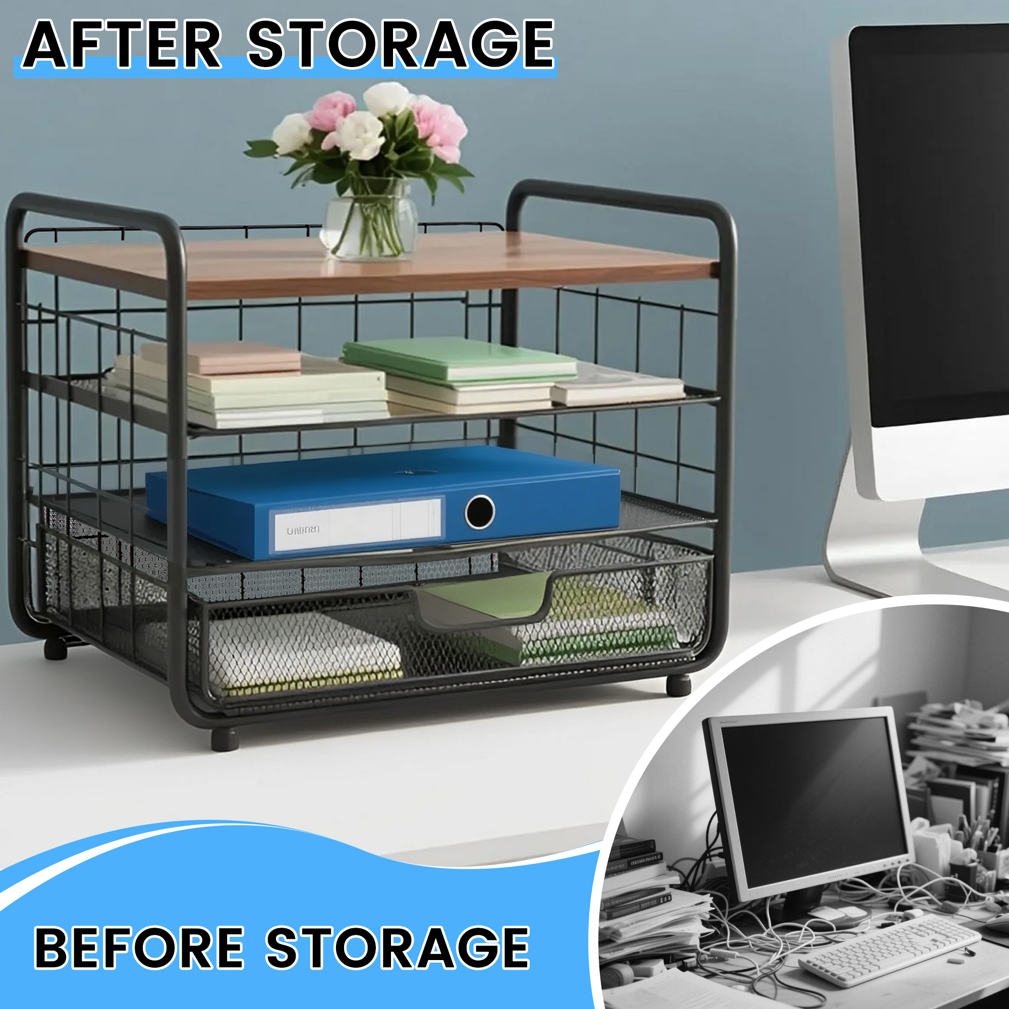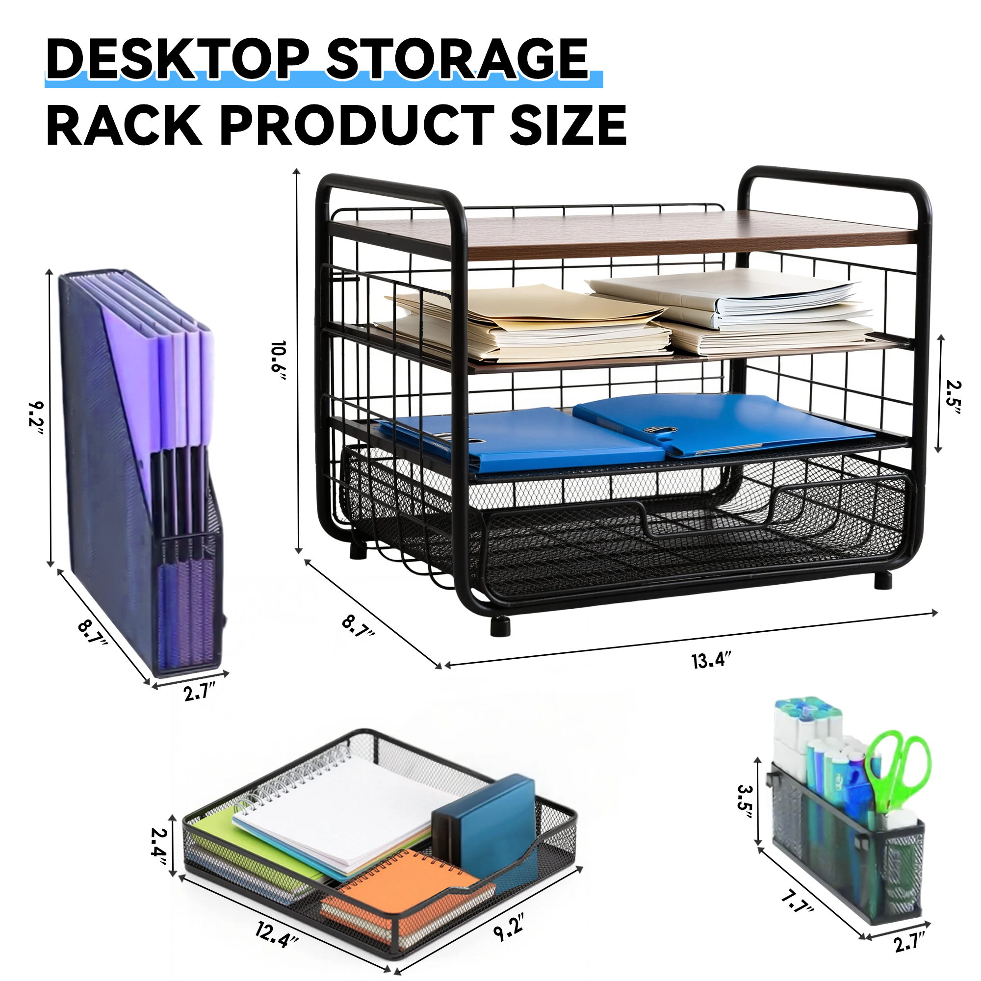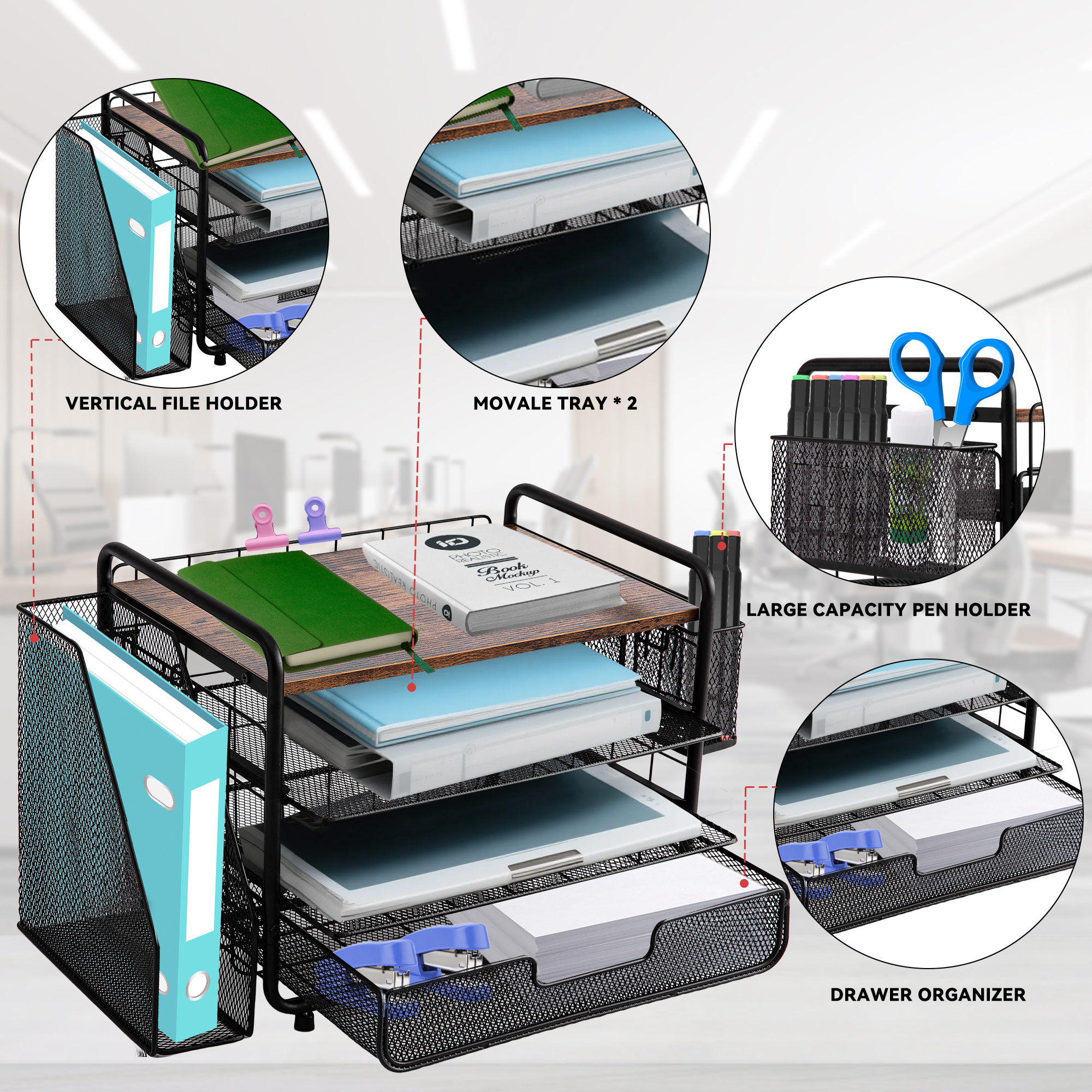 ECOZZONE 4-Tier Desk Organizers - Bid Farewell to Clutter on Your Desk and Make Efficient Work and Study Within Easy Reach! ✍️ 2 Smooth Trays Can Be Easily Pulled Out, And Common Stationery Is Readily Available.