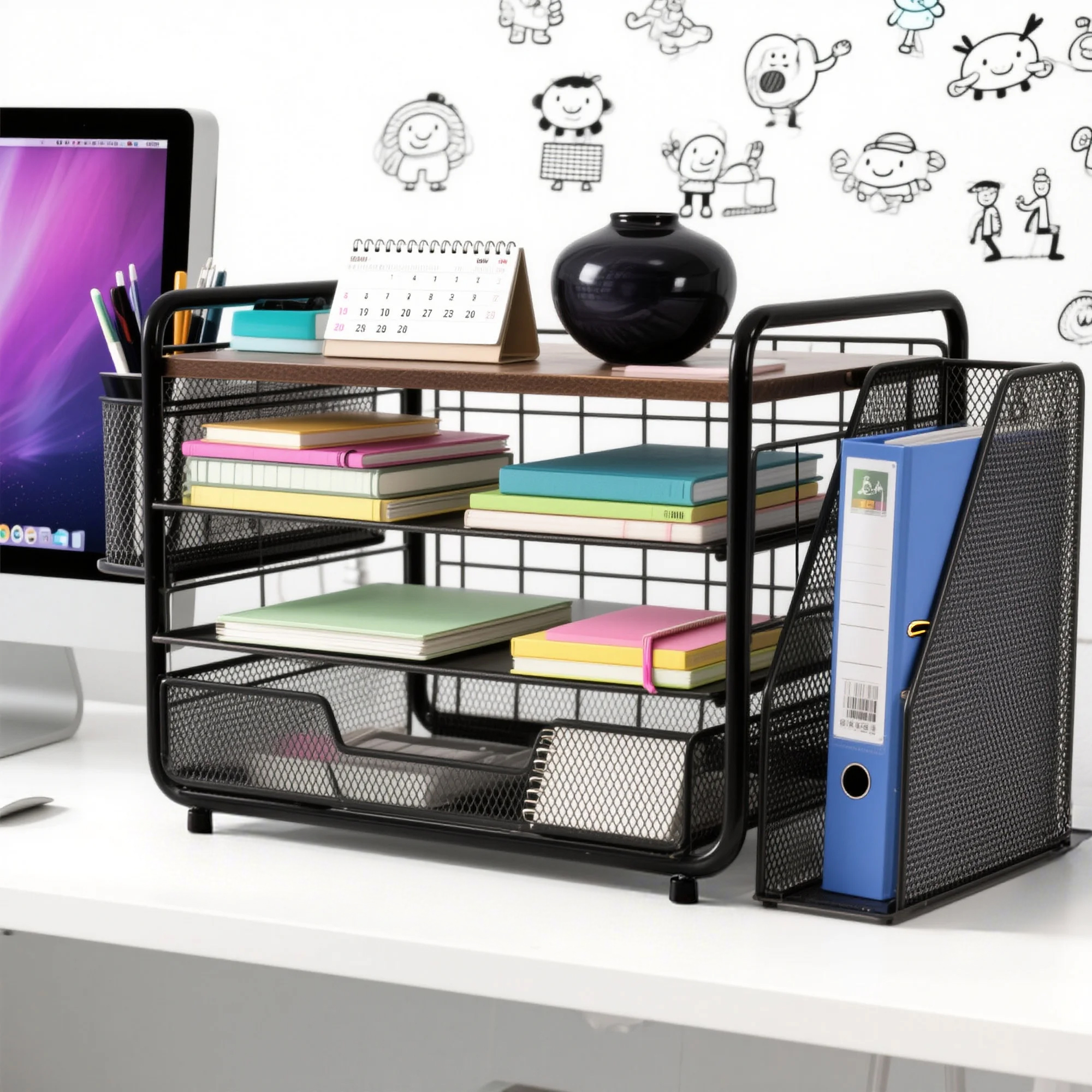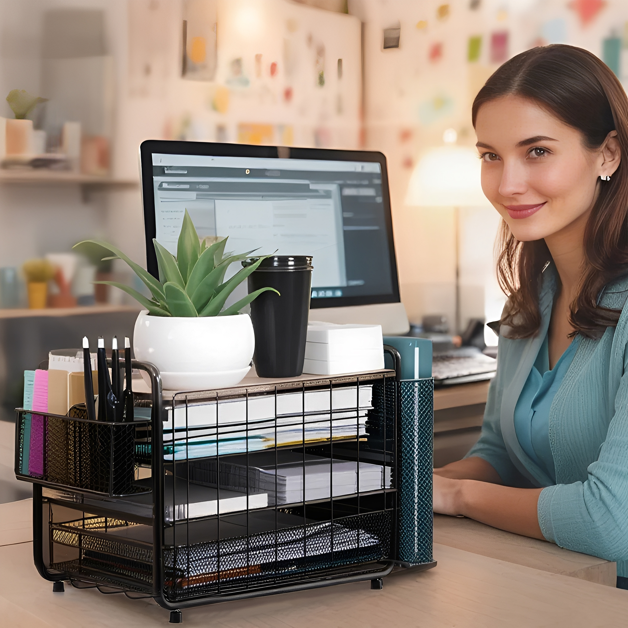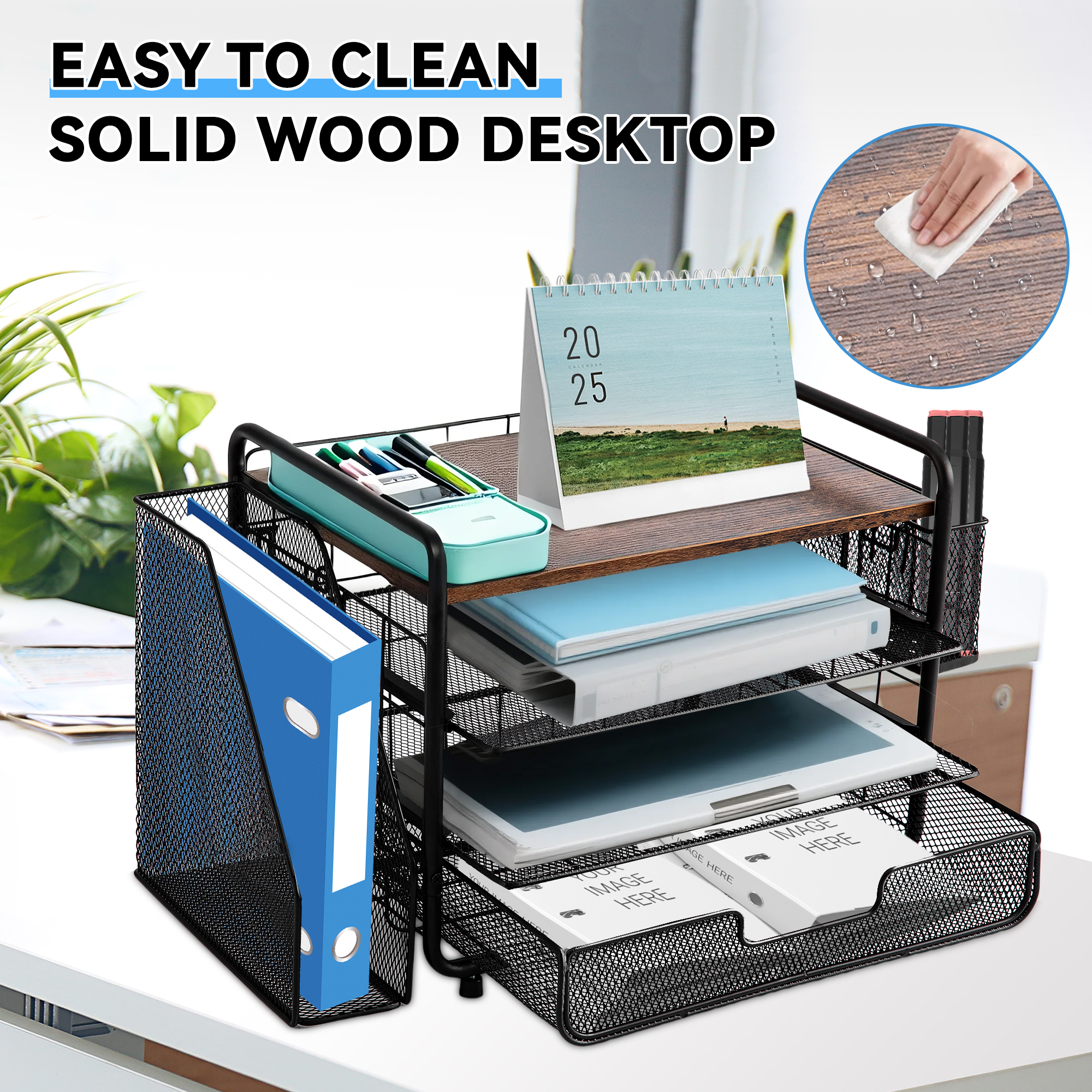 ECOZZONE 4-Tier Desk Organizers - Bid Farewell to Clutter on Your Desk and Make Efficient Work and Study Within Easy Reach! ✍️ 2 Smooth Trays Can Be Easily Pulled Out, And Common Stationery Is Readily Available.
