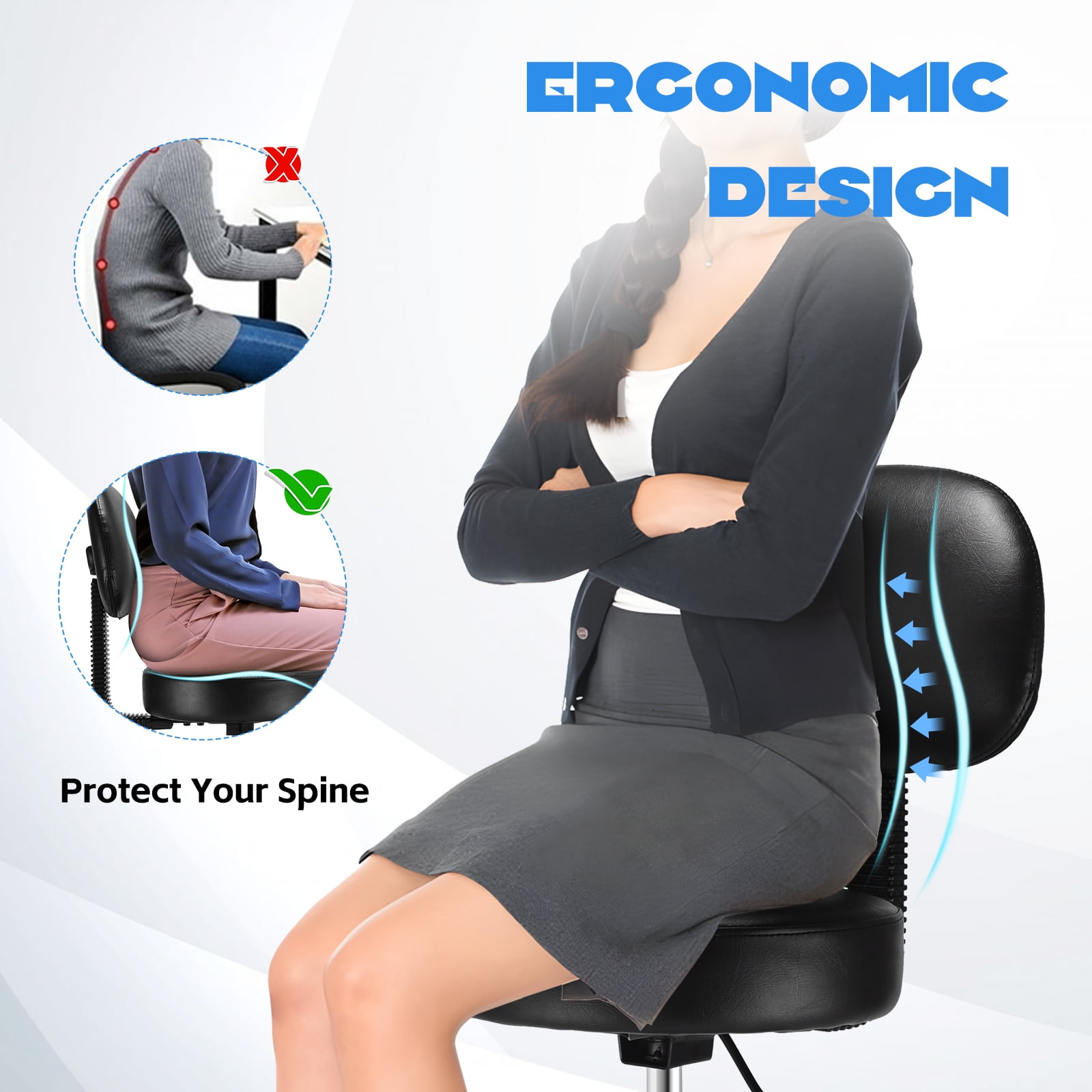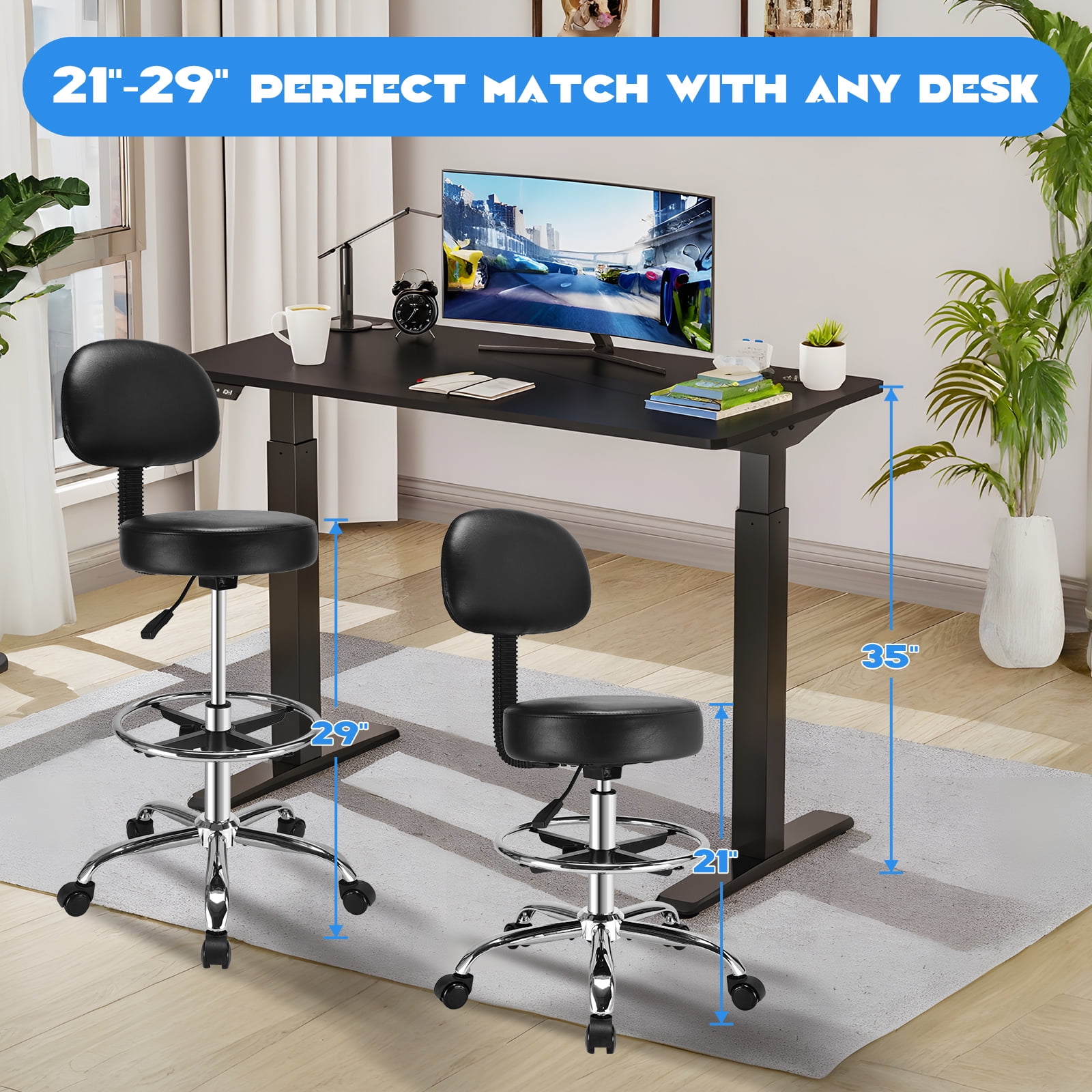 - 【Height Adjustment】 This drafting chair is height adjustable, ranging from 21“to 29”, making it easy to adapt to a variety of workspaces and personal needs. The backrest is removable and supports 360° swivel, providing a flexible use experience. Whether it's a studio, classroom, home, or spa, it's the perfect fit for a variety of scenarios.