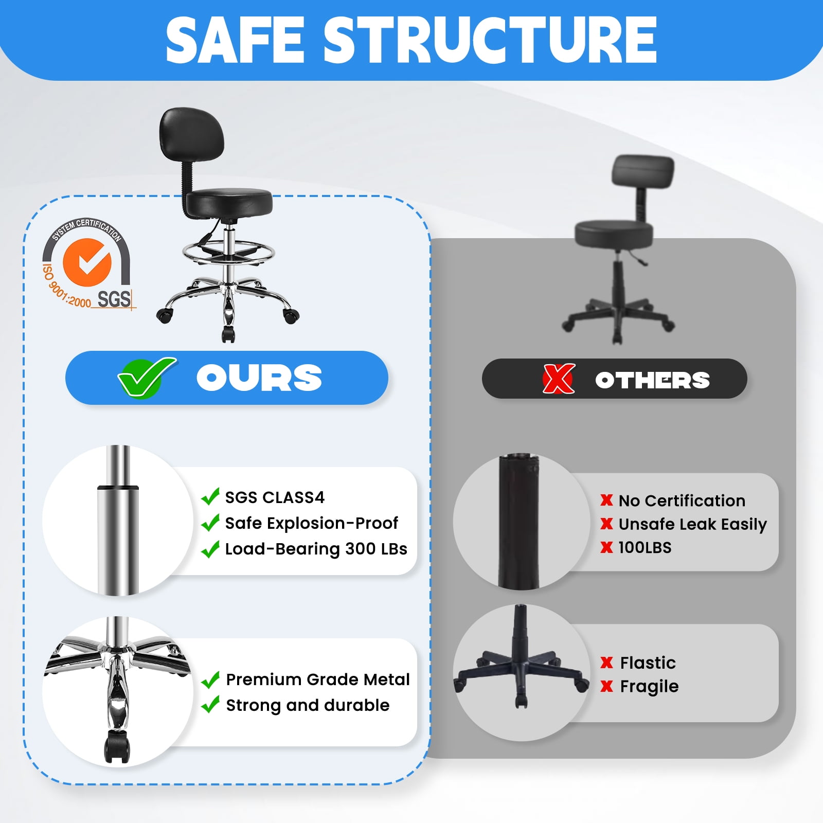 - 【Sturdy and Durable】 Based on SGS certified class 4 gas rods and high strength steel frame, this drafting stool has been tested for 100,000 lifts and demonstrates superior stability and weight capacity. The sturdy metal base is designed to be wide and stable to prevent tilting and tipping over to, and easily holds up to 400lbs to ensure worry-free comfort and long-lasting durability.