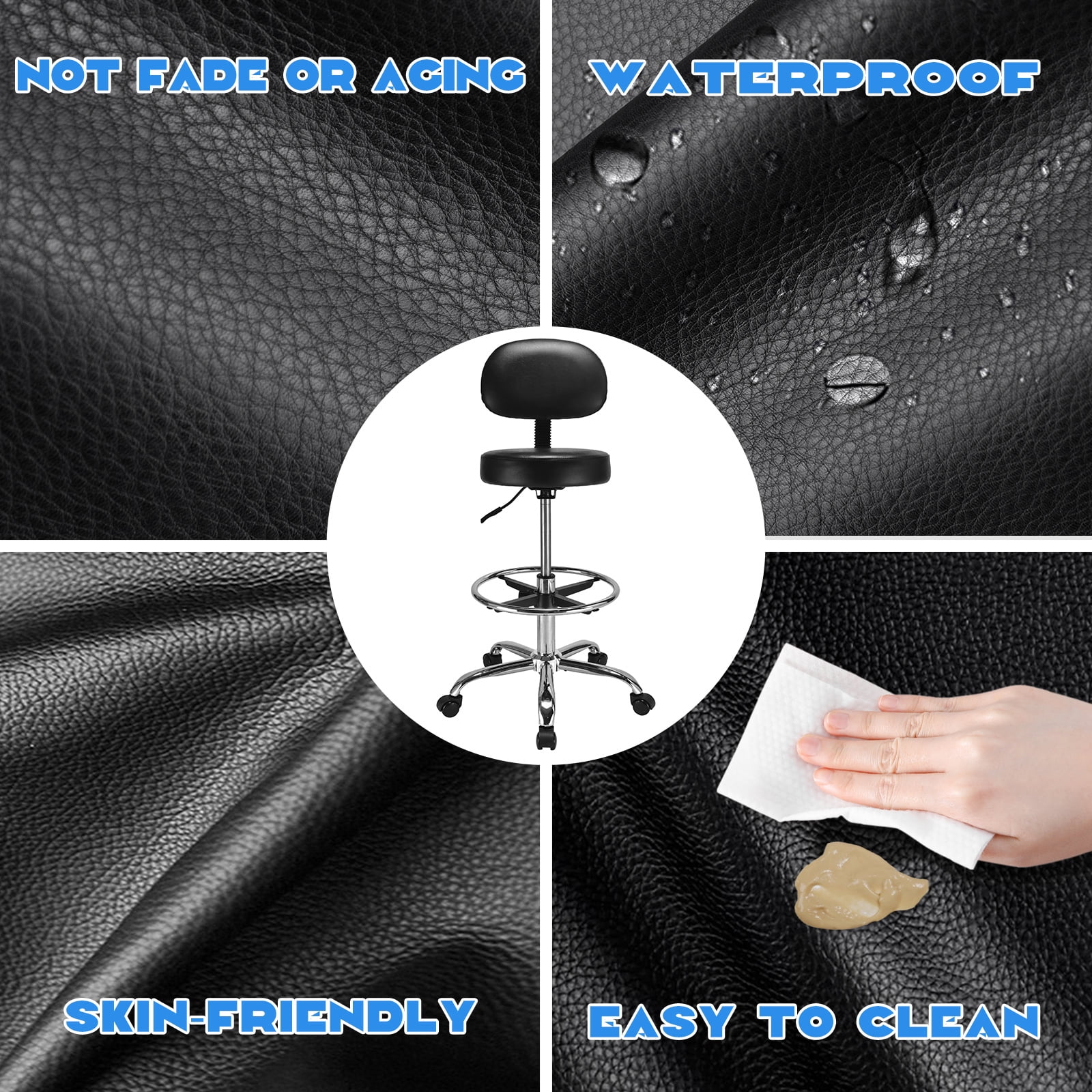 【Comfortable Experience】This drafting stool on wheels uses high density memory foam, soft skin-friendly and breathable leather and other materials to provide a comfortable sitting experience. The thick seat cushion is thickened to 3.5 inches, full and thick, with enough elasticity and softness to provide all-day comfort.