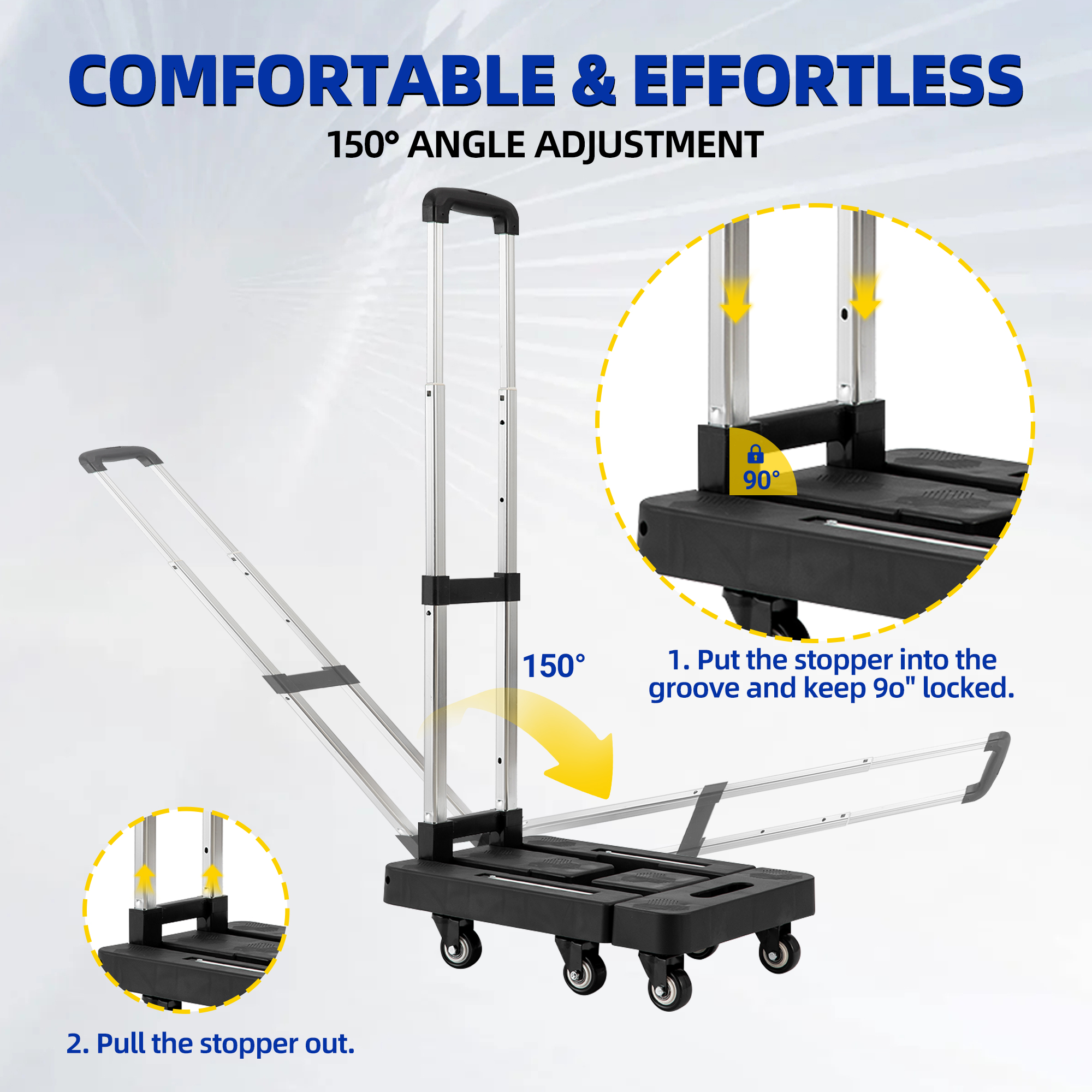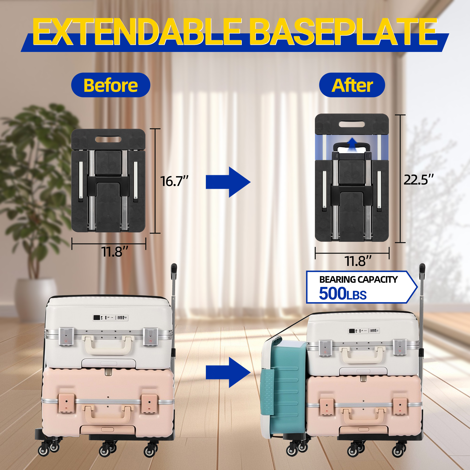 - 【Extendable Platform for Oversized Loads】:The expandable loading base (extends from 16.7" to 21.5") accommodates large suitcases, moving boxes, or bulky items effortlessly. No more multiple trips!