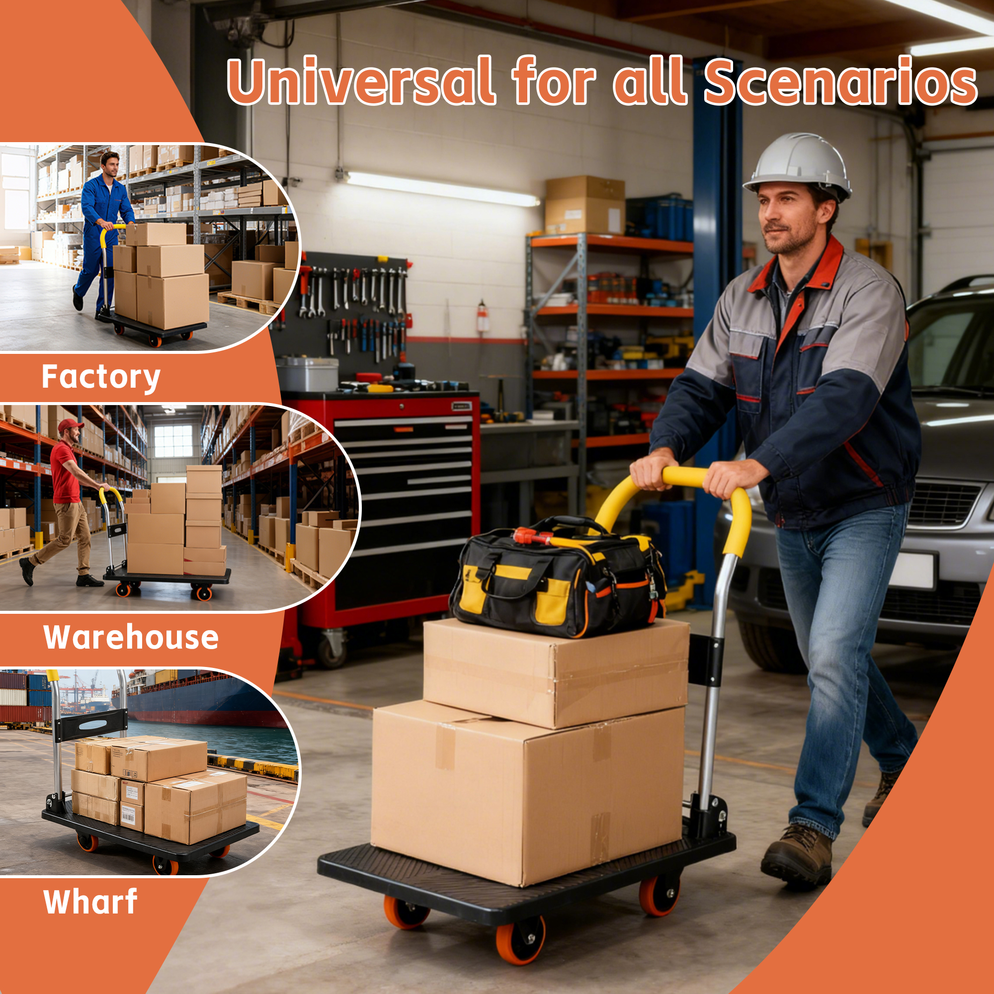 - 【All-Purpose Utility】 Ideal For Moving, Warehouses, Supermarkets, And Camping—Transport Luggage, Gardening Tools, Delivery Boxes, And More. One Vehicle Covers All Work And Life Scenarios.