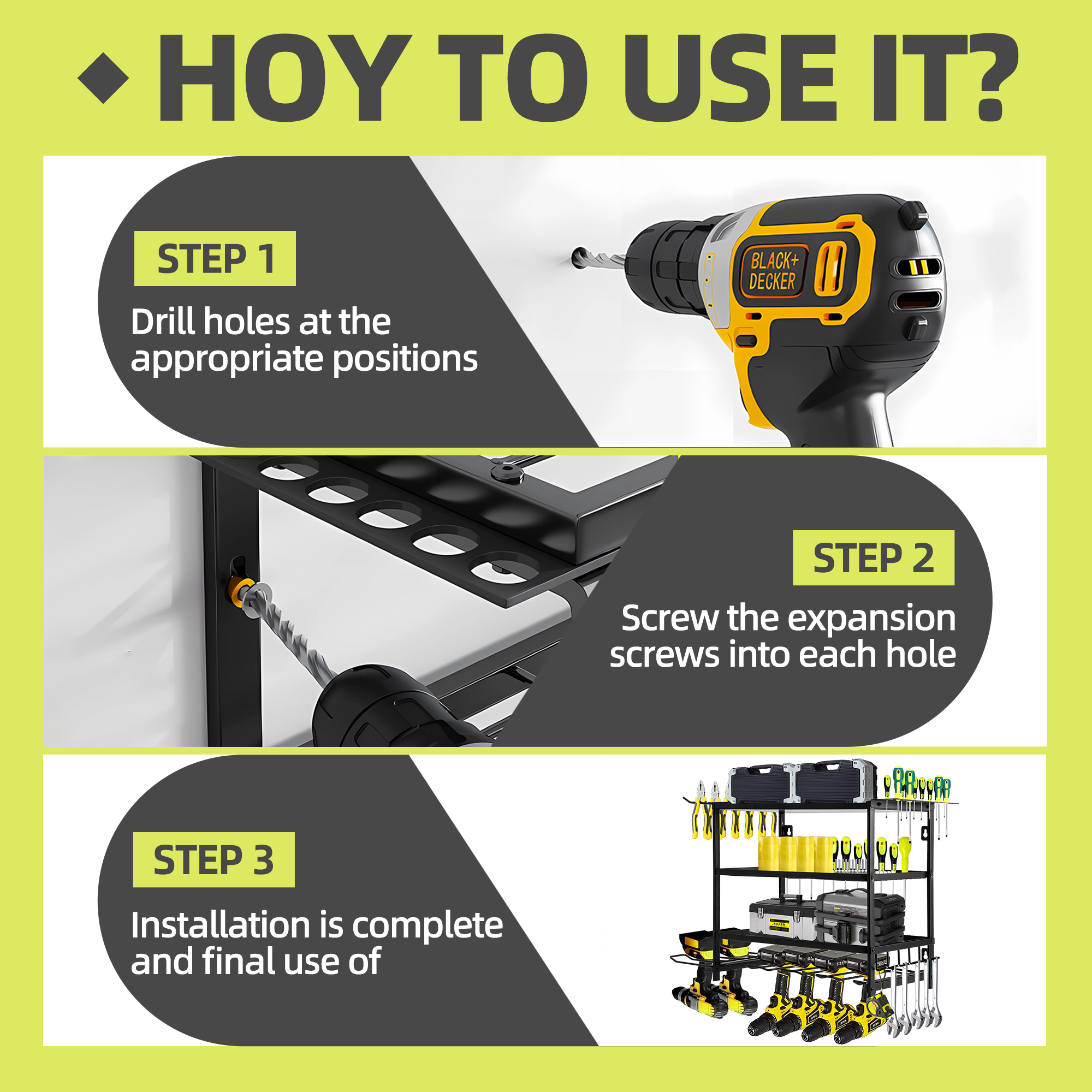 - 【3-Step Quick Installation, Saving Time And Effort】:It comes with expansion screws and installation manual. No complicated tools are required. You only need to mark the drilling position, fix the bracket, and hang the tool rack. The installation can be completed within 10 minutes.