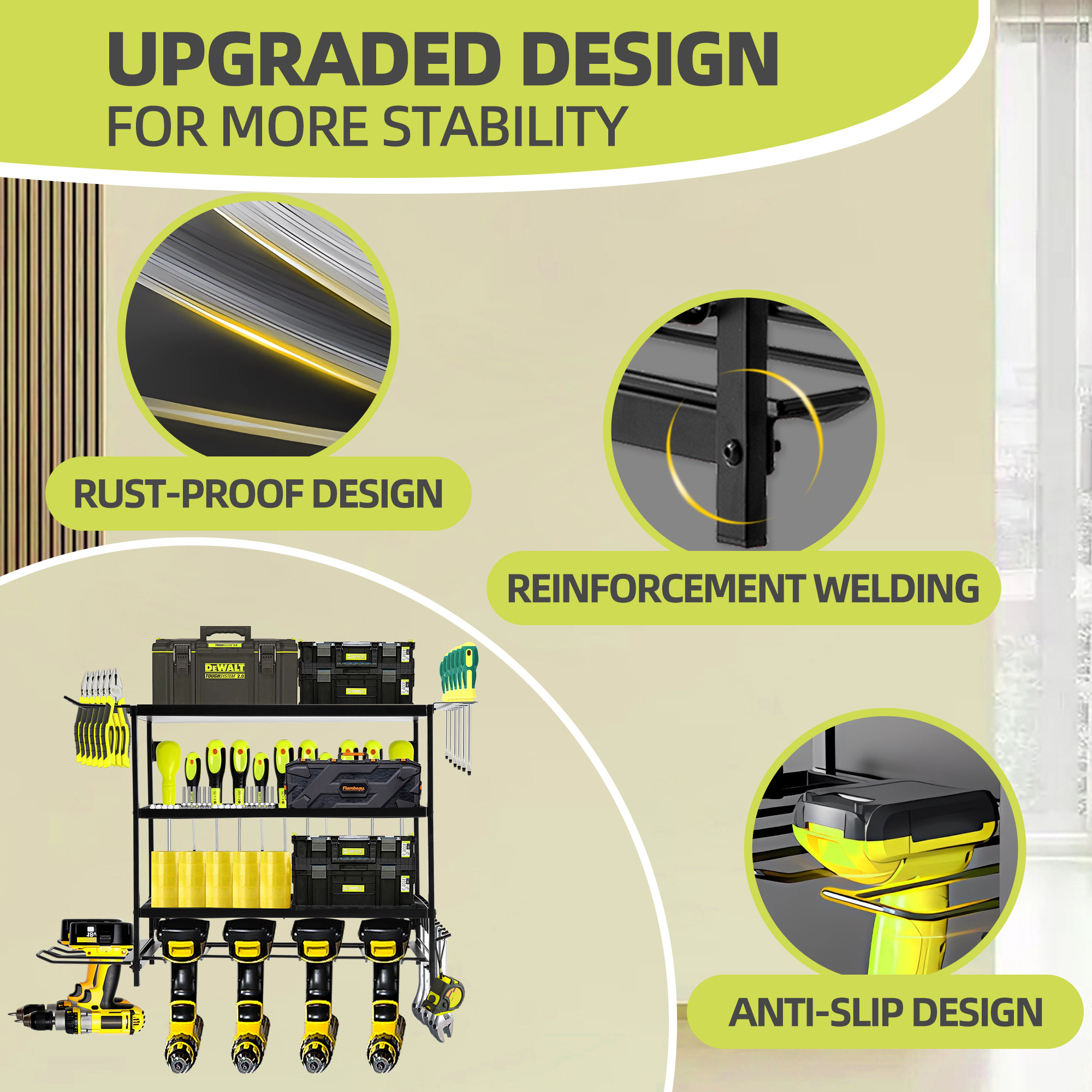 - 【Super Strong Load-Bearing, Stable And Durable】:Made of high-strength steel + thickened structure, the single layer can bear 50 pounds and the overall load-bearing capacity is up to 150 pounds. It is durable and will not deform, and can easily store heavy tools such as electric drills, wrenches, etc.