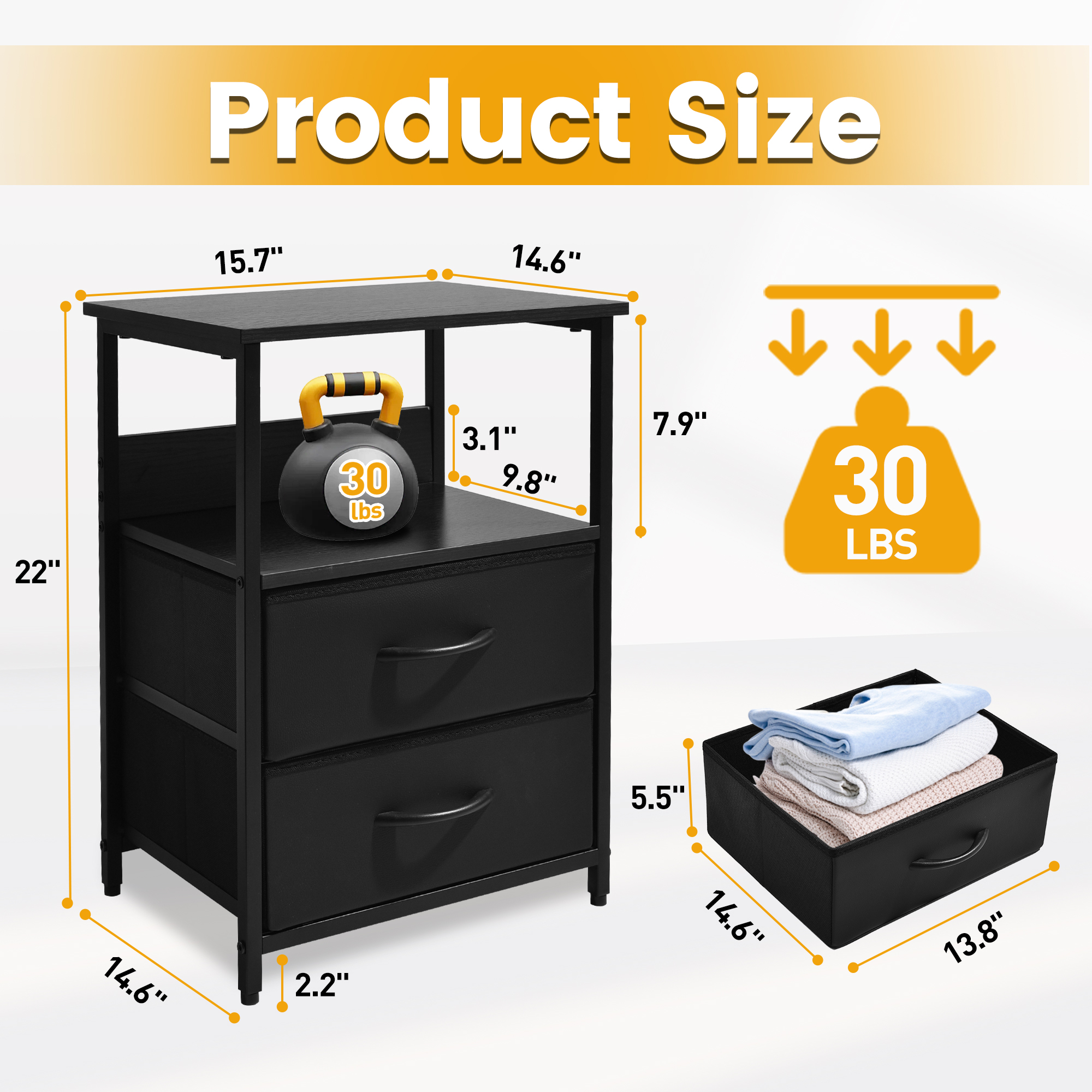 - 【Ample Storage Space】- Large Capacity Fabric Drawers + Double Shelves Design, The Drawers Can Neatly Organize Personal Clothes and Jewelry Accessories, Open Shelves Perfect for Displaying Books and Decorative Ornaments. One Cabinet Can Be Used for Both Bedroom Night stand and Living Room Side Table.