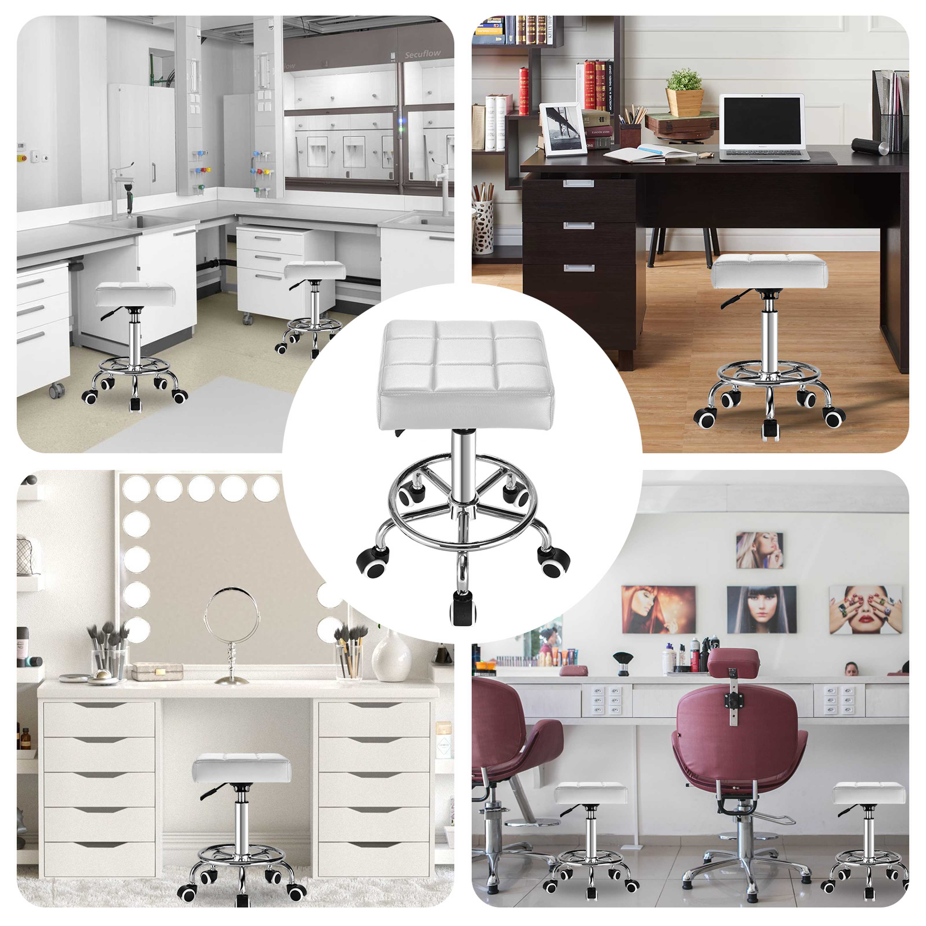 Wider square cushions Rolling stool- Loop footrest for leg support, Adjustable rolling stools with wheels, 300lb weight capacity, Tattoo stool for medical salon work office at spa center