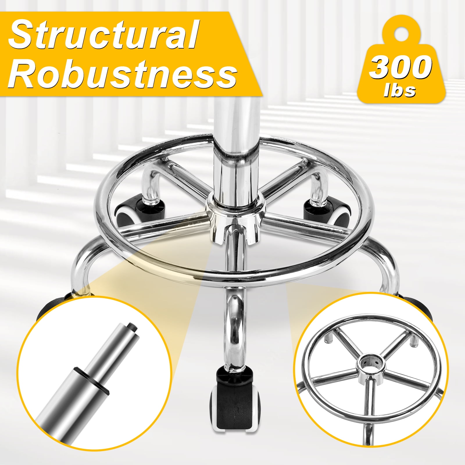 - Sturdy Metal Base: Comparing the easily damaged plastic base, the metal base makes the Adjustable stool with wheels stronger and more load-bearing. Weight capacity: 300 lbs.