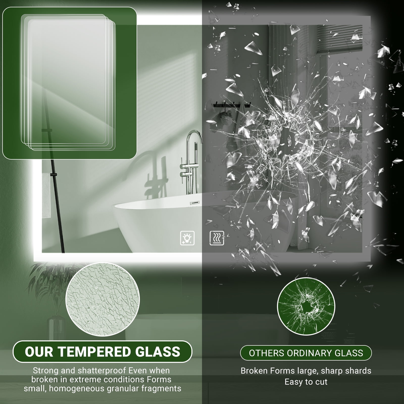 - Crafted with 5mm tempered glass, this mirror is shatterproof and explosion-proof, minimizing the risk of injury if the mirror is accidentally broken.